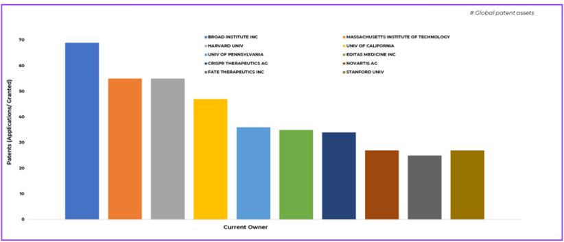 The ecosystem surrounding CRISPR based medicine is shaped by both academic and commercial leadership. Institutions such as the Broad Institute, MIT, Harvard, Stanford, and the University of California continue to hold foundational IP that underpins much of modern gene therapy development. These academic portfolios explain why licensing remains central to commercial gene therapy strategies.